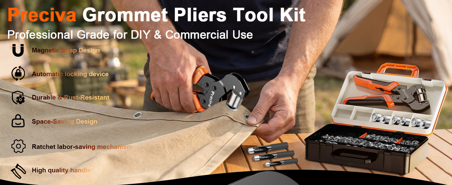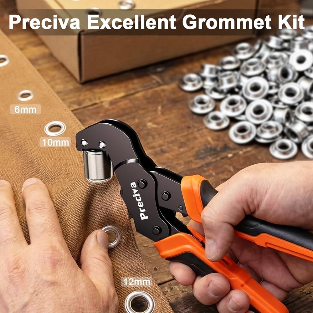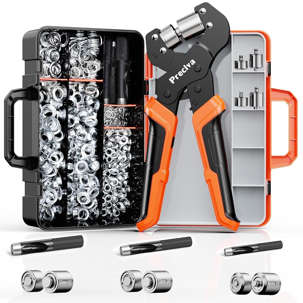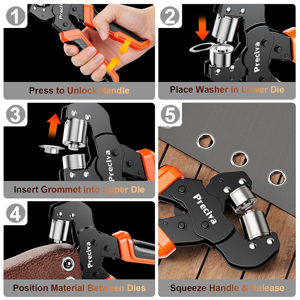 Labor-Saving Ratchet Design: The grommet tool comes with a ratchet device that reduces the pressure needed to be applied for stamping, saving more labor than ordinary grommet pliers.