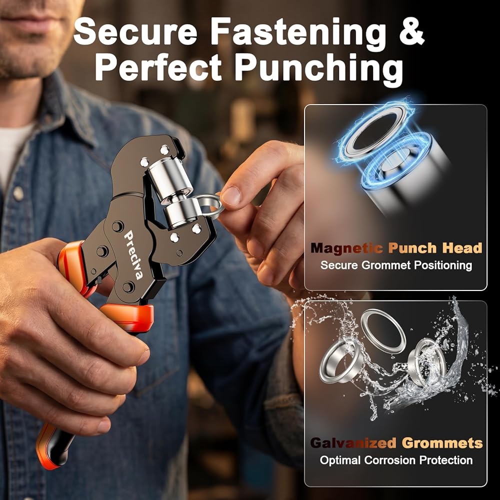 Wide Range of Applications: Grommet pliers can be used to punch and crimp grommets at the same time for PVC banners/ tarpaulins/ cardboard etc. (NOTE: For materials that are difficult to punch, such as fabrics, you can use the punch in the set to pre-punch the holes)