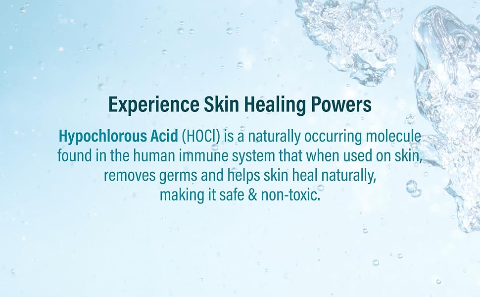 HYPOCHLOROUS ACID: (HOCl) is a naturally occurring molecule found in the human immune system that when used on skin, it helps removing skin-inflaming bacteria that can cause irritation and supports natural skin healing.