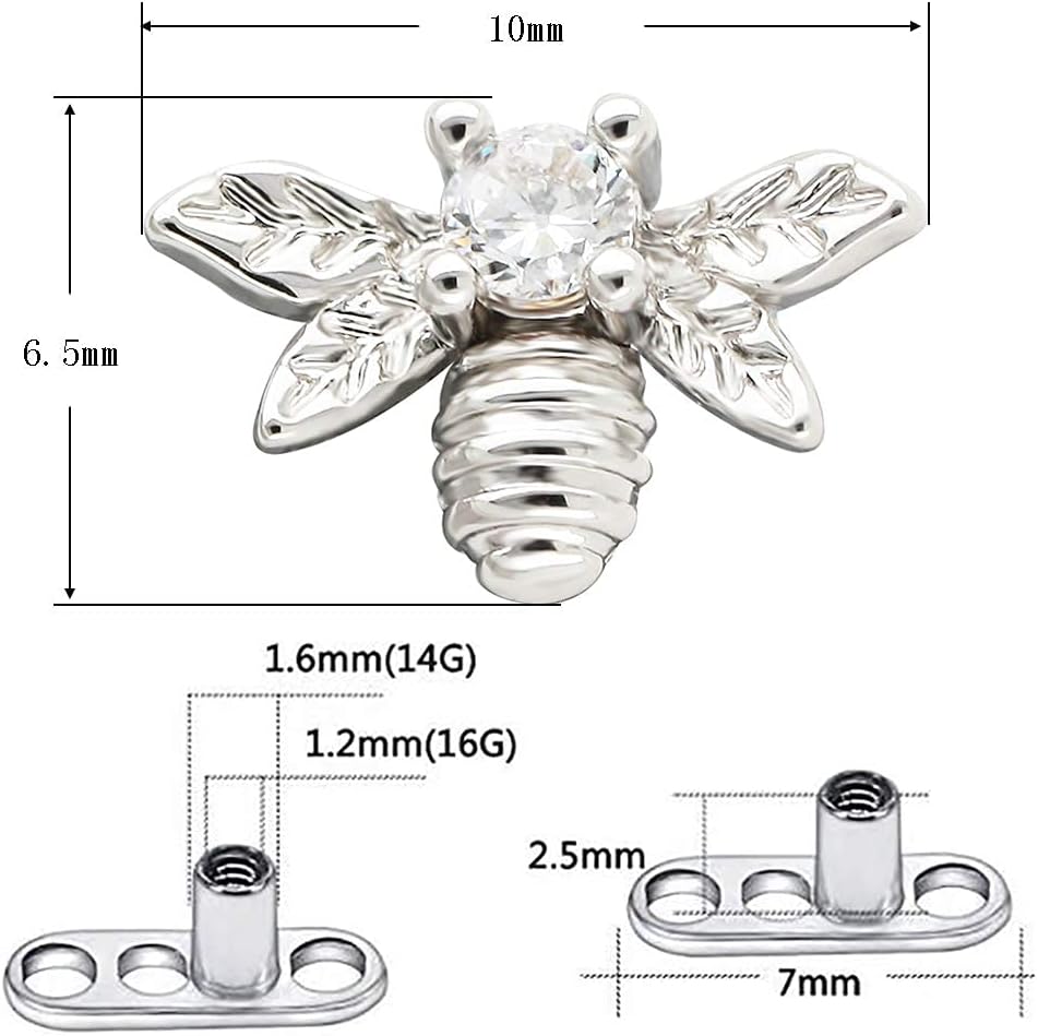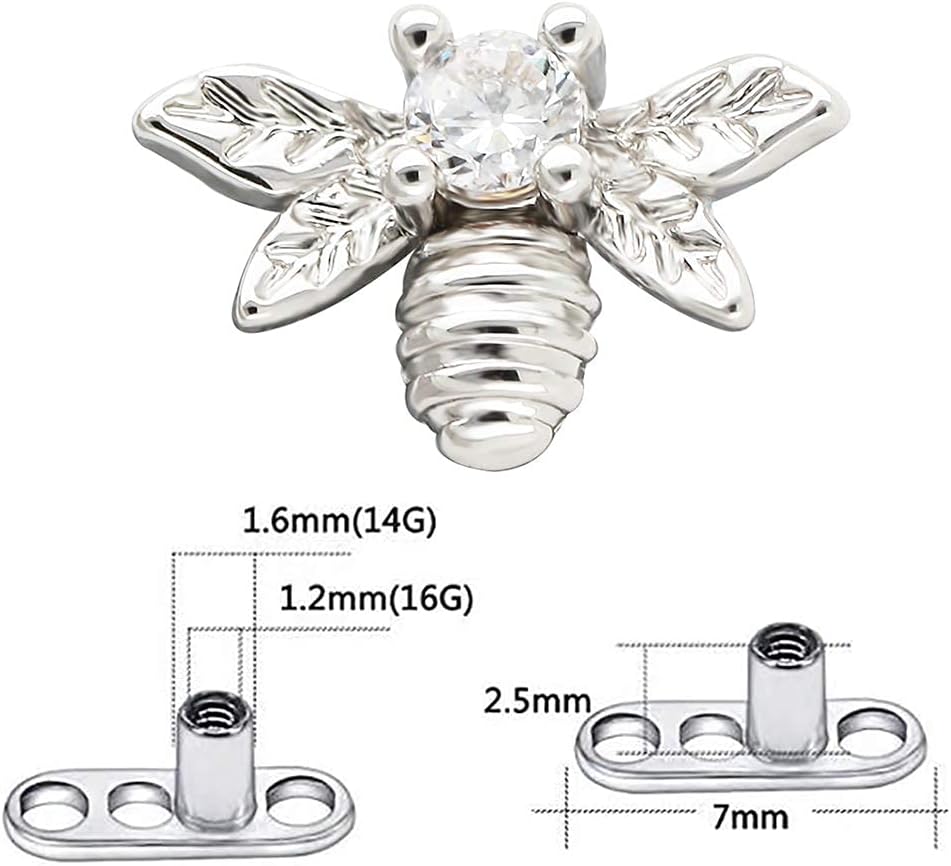 Excepro Dermal Anchor G23 Titanium Multicolor Plated Bees CZ Body Jewelry Anchor Dermal Tops