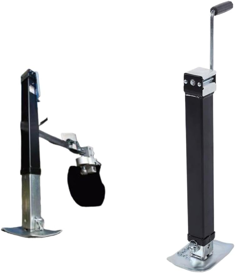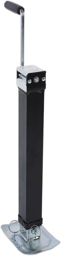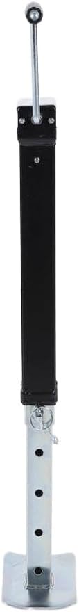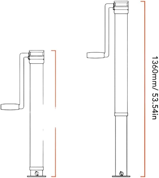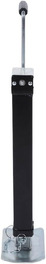 POWERFUL LIFTING CAPACITY: With a load capacity of 8000lbs and a dynamic load capacity of 7000lbs, this trailer jack is designed for heavy lifting tasks, providing support for various towing applications.CONSTRUCTION AND : Made from carbon steel with a galvanized inner tube and powder-coated outer tube, this trailer jack offers strength, rigidity, and resistance to wear.The treatment includes black spray paint on the outer tube and a galvanized finish on the inner tube for enhanced.VERSATILE USE: Suitable for use with travel trailers, horse trailers, multipurpose trailers, RVs, and yacht trailers.The welded-on design ensures secure installation and stable function during.ADJUSTABLE HEIGHT RANGE: Features a two-stage lift system with a screw lift of approximately 15 inches (381mm) and square tube travel of 13.39 inches (340mm).The overall height adjusts from 640mm (25.2in) in retracted position to a maximum of 1360mm (53.54in), allowing flexibility in different setup conditions.EASY : Designed for straightforward use with a comfortable handle that allows smooth raising and lowering.The direct welding installation provides a sturdy mount for consistent function.
