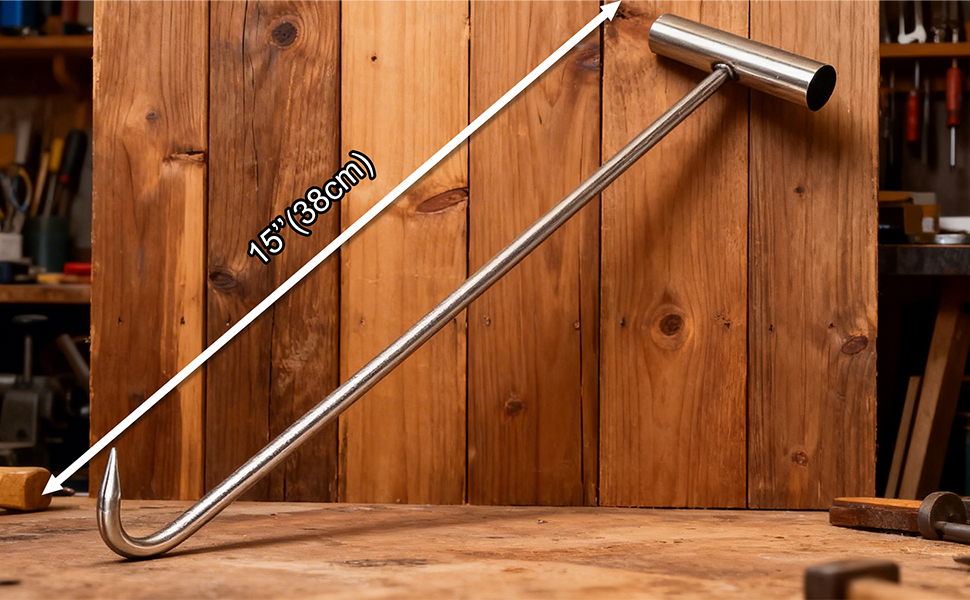 Heavy Duty 15''(38cm) Long T Shape Lifting Reaching Hook for Lifting Pulling Moving Manhole Covers, Storm Drains, Septic Tank Lids Door Pointed Head