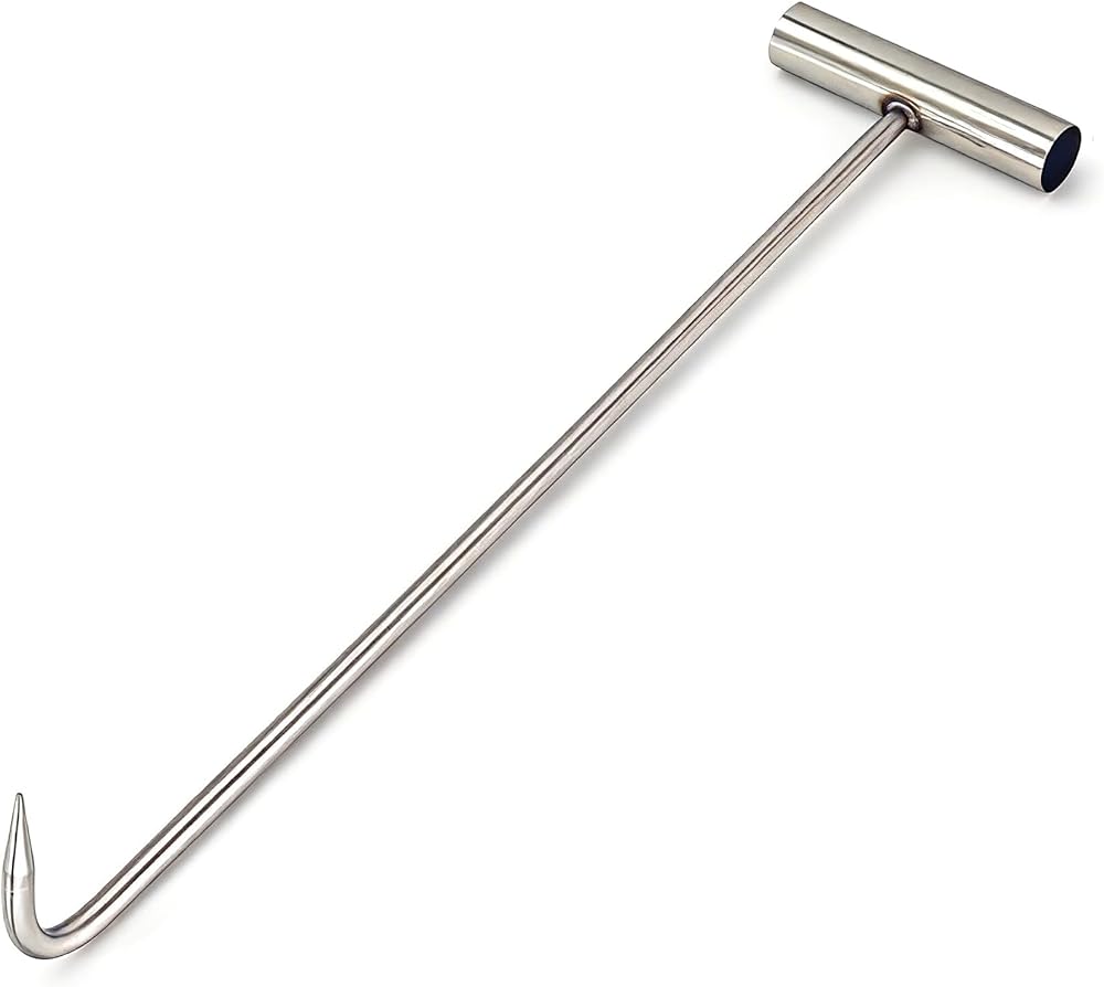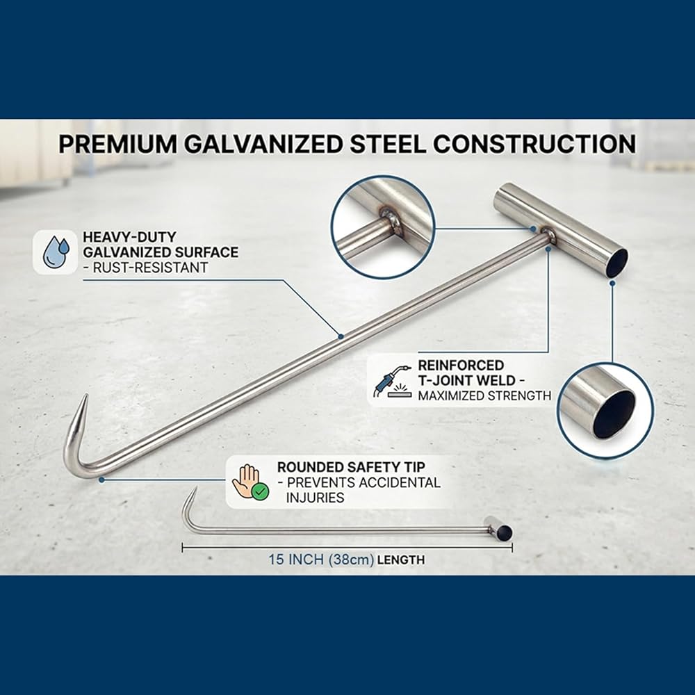 Heavy Duty 12''(30cm) T Shape Lifting Reaching Hook for Lifting Pulling Moving Manhole Covers, Storm Drains, Septic Tank Lids Door Pointed Head, Hand Meat Hook