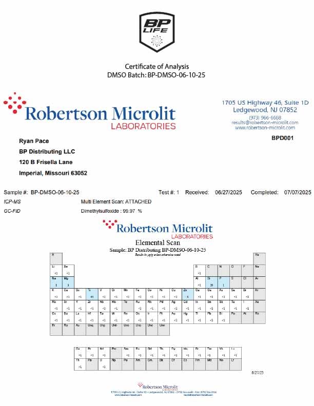 1 Gallon Dimethyl Sulfoxide from BP Life. High Purity, pharma grade 99.9+ Packaged in a Tested and compatible HDPE bottle, with a PTFE lined cap.
