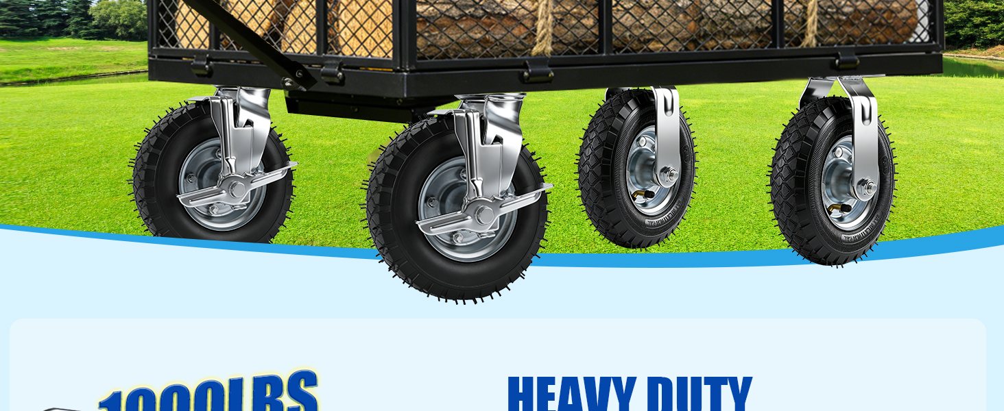 【Heavy Duty No noise Casters】- Our heavy duty pneumatic casters support up to 1000 lbs total weight capacity, with ultra-low rolling resistance, excellent shock absorption and noise reduction. No drag or friction when moving heavy loads on concrete, garage floors, warehouses and hard surfaces. Built for stability and safety in all heavy-duty industrial and equipment applications.