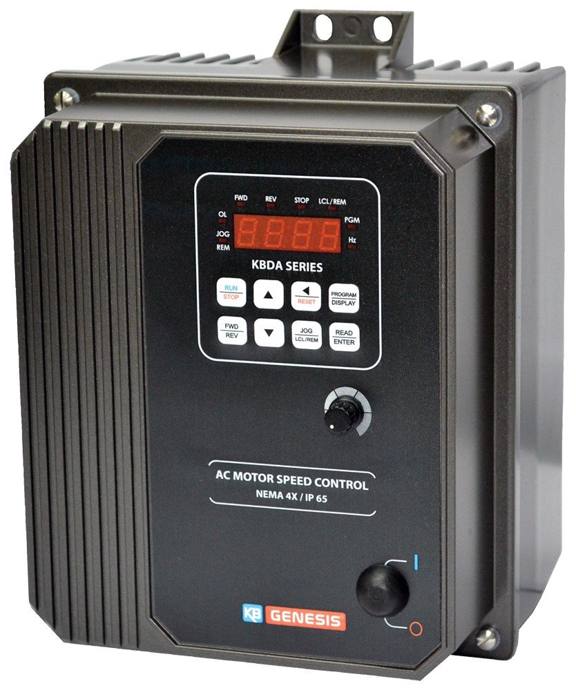 KB Electronics, 9543, KBDA-27D (Gray), 1.5;2HP, 1-Phase, 110-120V;200-240V (Input), Nema 4X Enclosure, Variable Frequency Drives