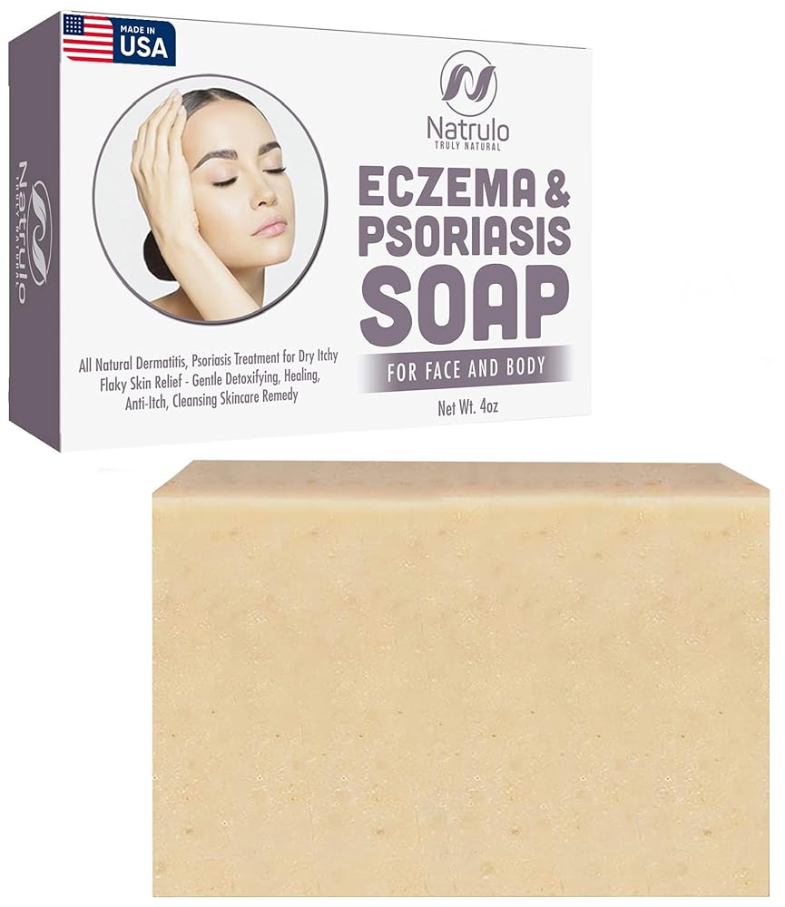 Eczema Soap Bar for Face and Body – All Natural Dermatitis, Psoriasis Treatment for Dry Itchy Flaky Skin Relief – Gentle Detoxifying, Healing, Anti-Itch, Cleansing Skincare Remedy – Eczema Soap Bar