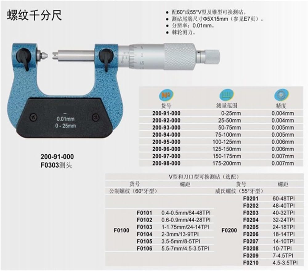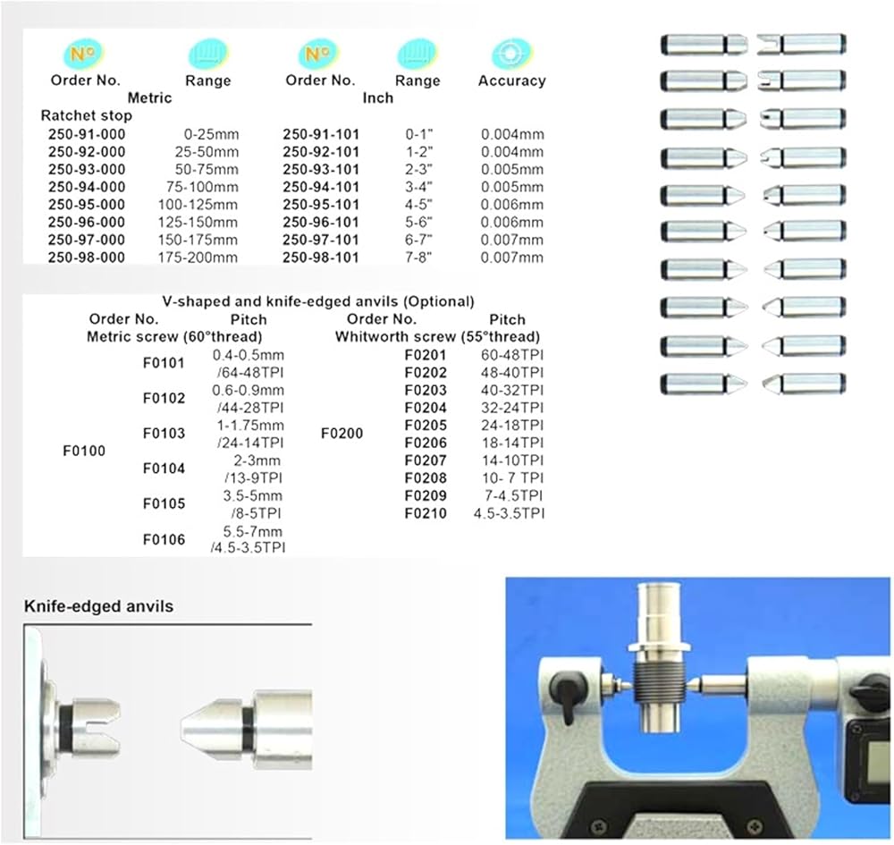 Metric measuring head 6pairs for Digital Screw Thread Micrometers