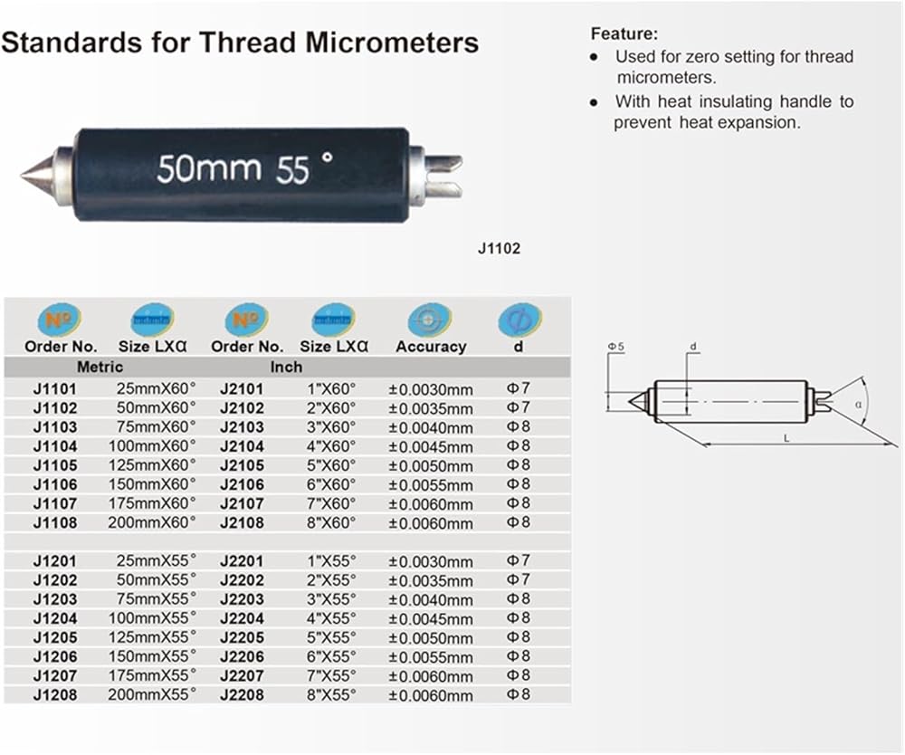 Metric Measuring Head 6pairs for Digital Screw Thread Micrometers