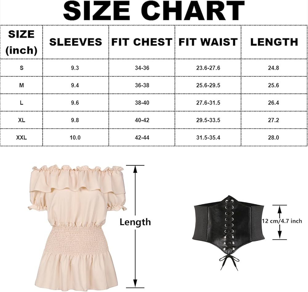 Accurate Sizing for Perfect Fit: Choose the right size using our chart for a comfortable and stylish appearance at Renaissance events.