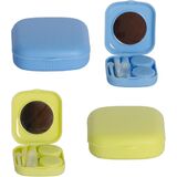 The contact lens case comes in a variety of colors, including blue, purple,pink, yellow and green. This not only makes it visually appealing but also easy to identify. The case is equipped with a mirror, which is very helpful when inserting contact lenses. Additionally, the included tweezer is a handy tool for handling contact lenses, especially when one of the lenses gets bunched up in the eyelid. It is an ideal accessory for those who wear contact lenses regularly.