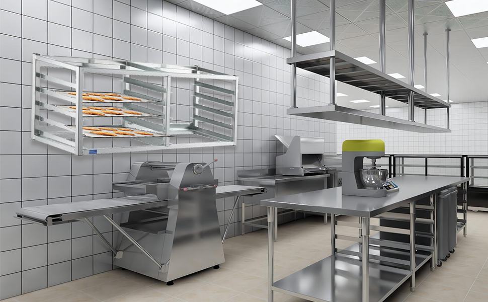 • Keep your kitchen or bakery running smoothly with a dedicated space for your sheet pans. Say goodbye to messy stacks and hello to order and efficiency.