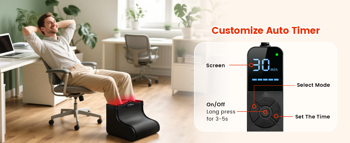 Personalized Red Light Therapy Feet: Red light therapy foot allows you to adjust the time (0-30 minutes), 5 energy intensity via the controller. Whether you're unwinding on the couch after work, or warming chilly feet late at night, set it to your own personalized mode. Red light therapy for feet and ankles can be used with essential oils, delivering its magic to your weary feet. we've doubled the cord length for enhanced comfort. Now you can relax on your sofa, bed, or desk while using it