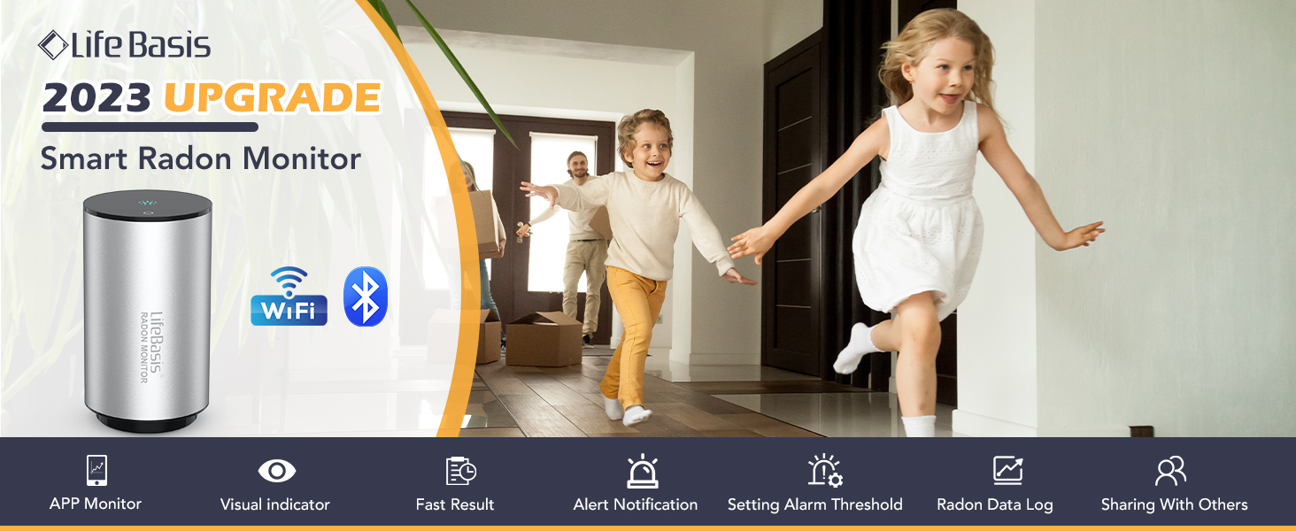 Life Basis Radon Detector for Home Basement, Smart Radon Monitor Fast Capture of Fluctuating Levels, Radon Tester Short & Long-Term Monitoring with Notifications - Connected Mobile App & WiFi