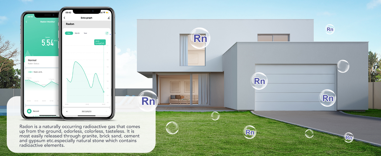Smart View Short And Long Term Radon Trend: Smart view of radon fluctuation date per hour, day and month and history radon values. Since radon levels constantly fluctuate, continuous long-term monitoring is the surest way to protect your family