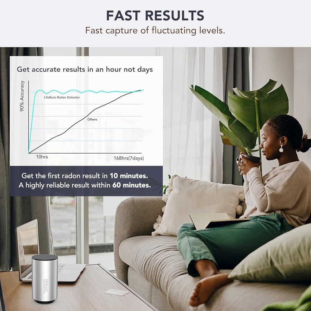 Fast Results And Professional: Innovative Ion-chamber Radon Sensor, fast capture of fluctuating radon levels. The first radon result will be displayed in 10 minutes and data will be updated every 10 minutes. A highly reliable result will be get within 60 minutes. You don't need to spend a long time waiting for results