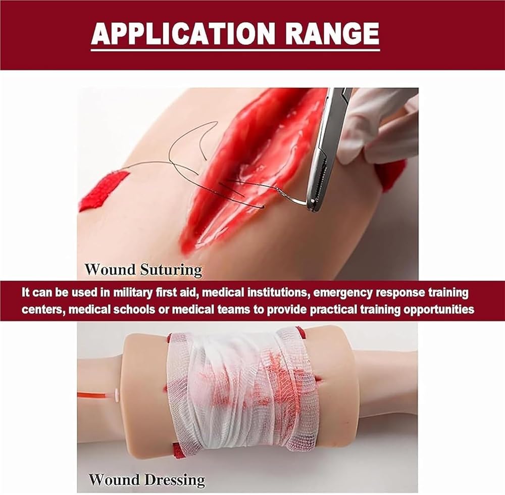 Realistic simulation: The cut wound dressing trainer simulates the real appearance and characteristics of knife wounds, creating a real training scenario for simulating wound treatment and hemostasis training.
