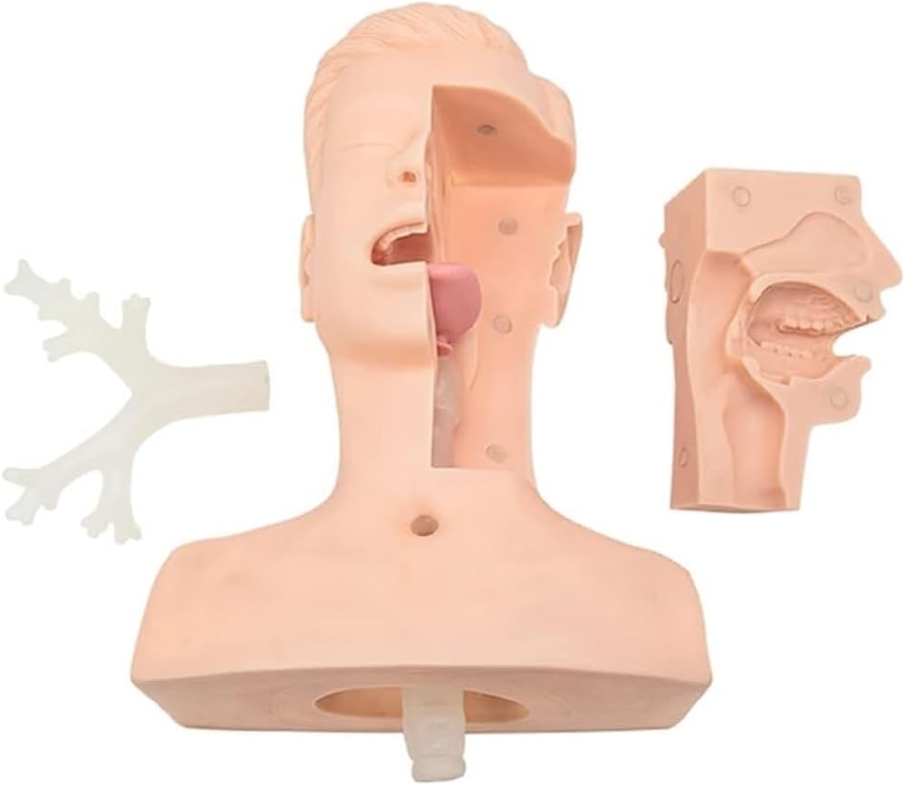 Show nasal anatomy and neck structure;Simulated sputum can be put into the oral cavity, nasal cavity and trachea to enhance the real effect of practicing intubation skills.