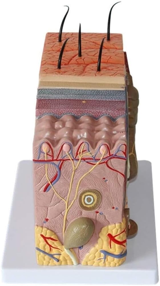 The model consists of two parts: epidermis and dermis. The subcutaneous tissue is connected to the deep tissue, clearly showing the hierarchical structure of the epidermis, dermis, subcutaneous tissue and skin appendages. The model has a total of 25 position indications.