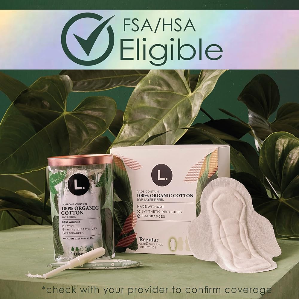 • FSA/HSA ELEGIBLE: Check with your FSA or HSA plan on the coverage of feminine products