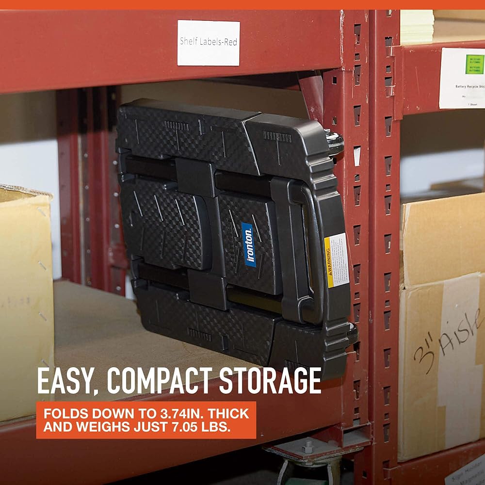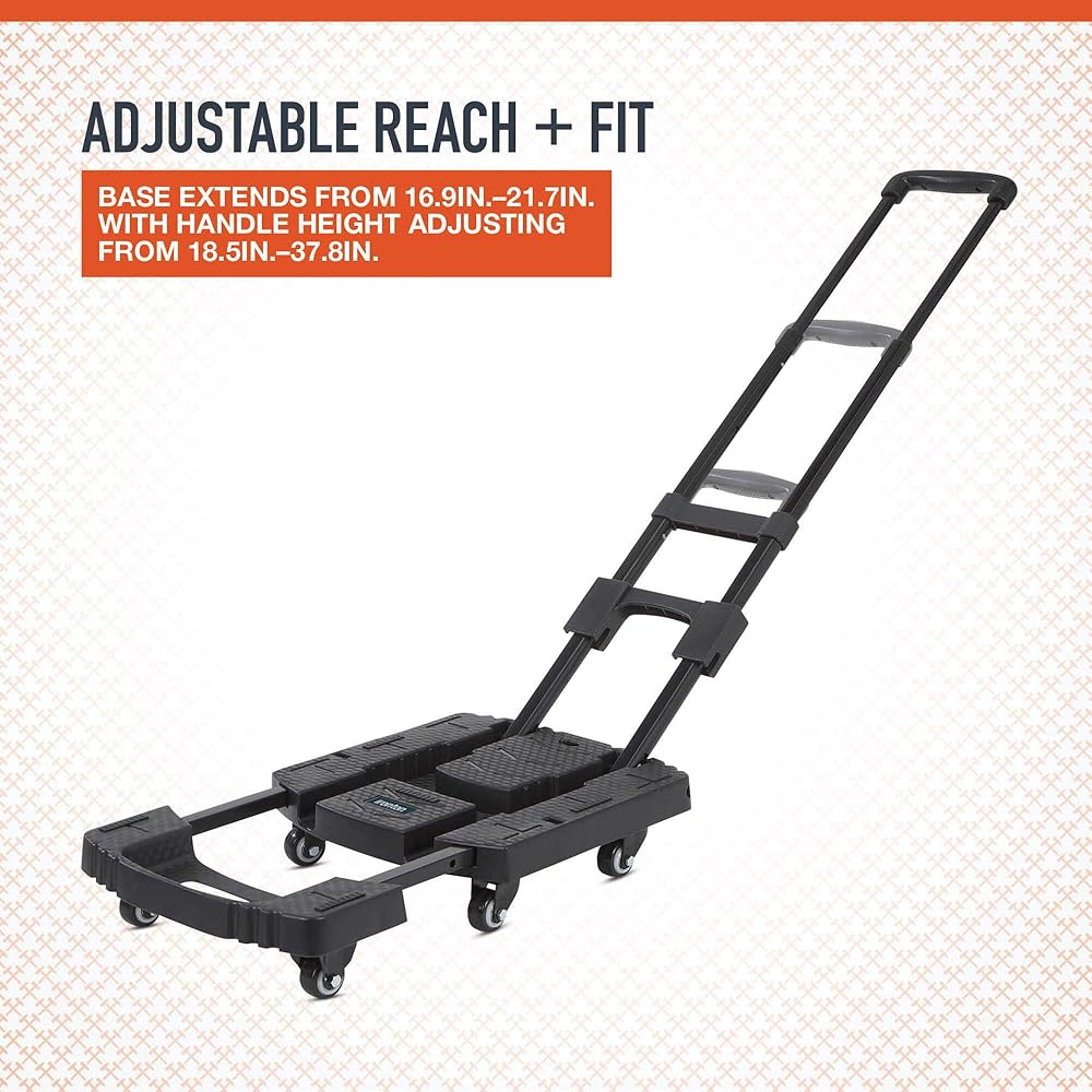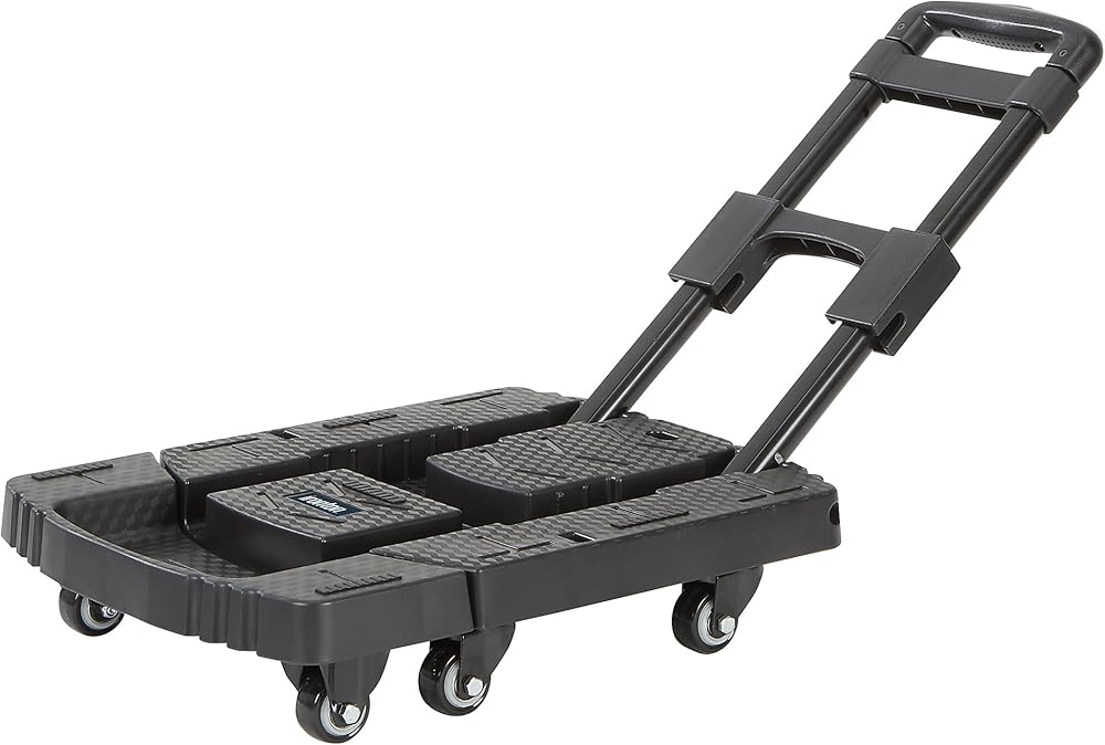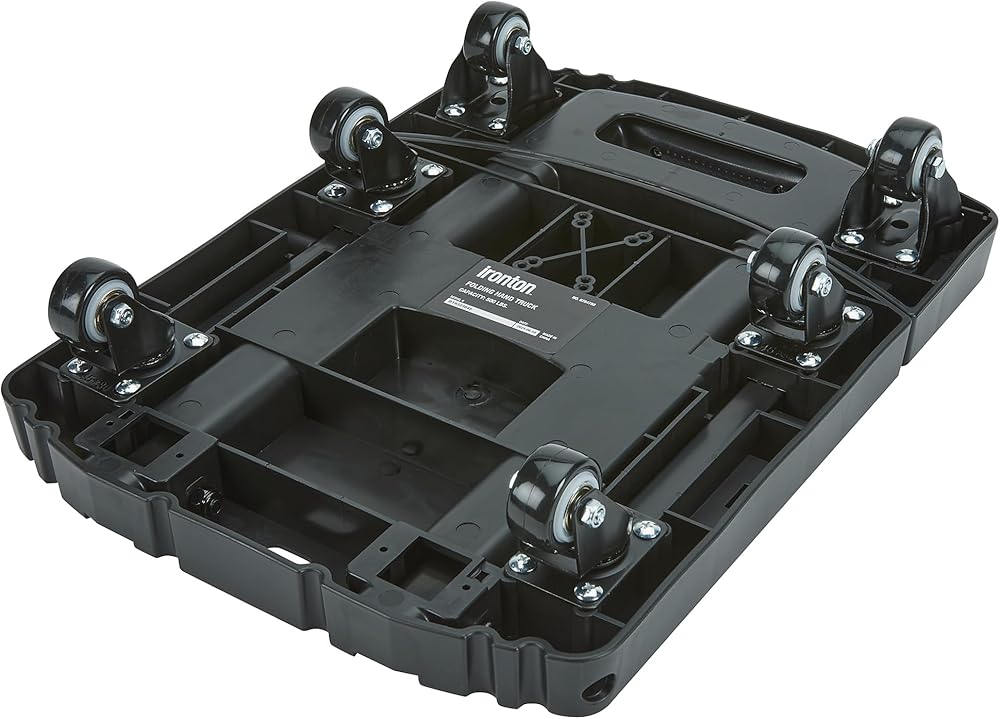 The Ironton Foldable Hand Truck is a heavy duty, compact dolly designed to move up to 500 lb of boxes, luggage, tools, and equipment with less effort. Its lockable telescoping handle and 6 dual ball bearing wheels offer smooth, controlled manoeuvring whether you're pushing through a warehouse or pulling through a parking lot. A thickened 16.9" x 12.6" non slip baseplate and extendable platform give you extra support for bulky items, while two included elastic ropes help secure your load in seconds. When the job is done, the cart folds down to just 3.74" thick and weighs only 7.05 lb, so it fits easily into car trunks, closets, or tight storage spaces. Built from durable polypropylene with thermoplastic rubber wheels and a corrosion resistant finish, this folding hand truck is made for daily use at home, in the office, or on the jobsite. Use it to reduce trips, protect your back, and keep your moves efficient and organised.