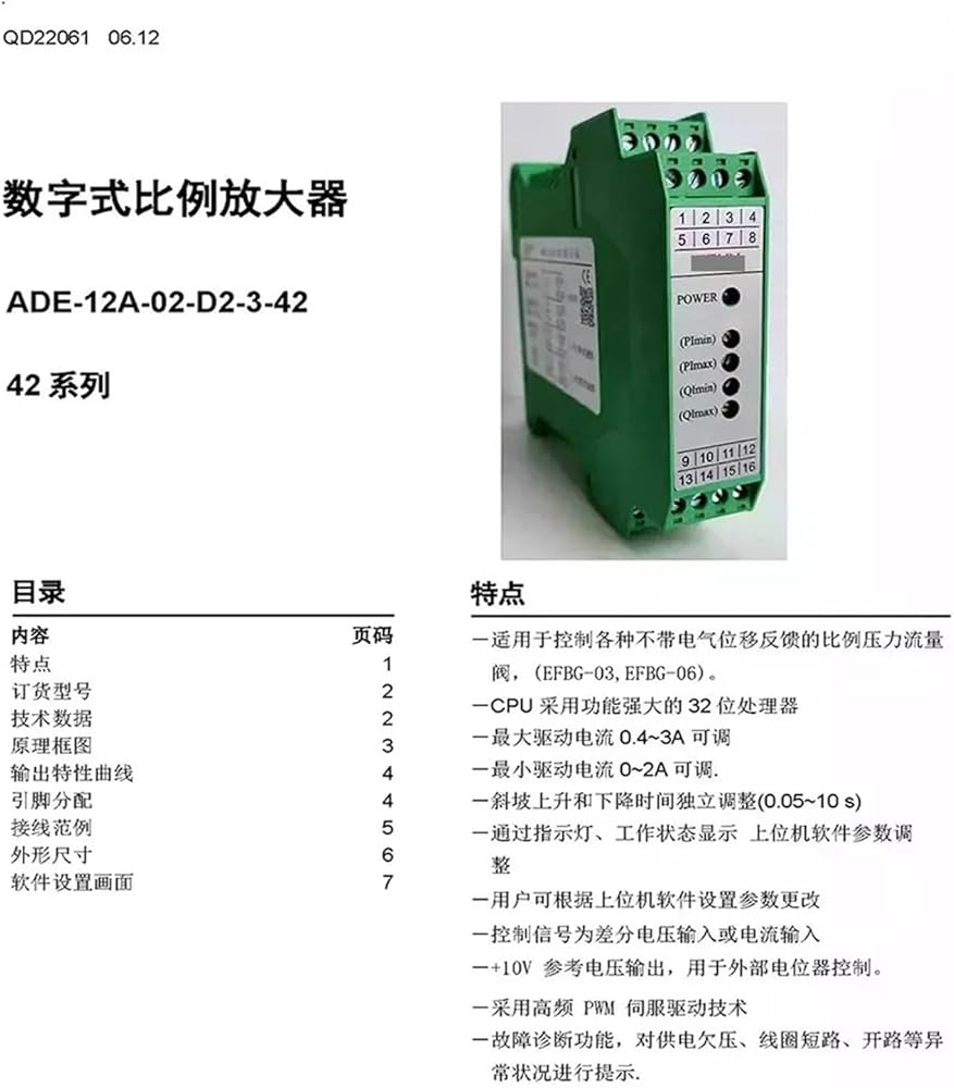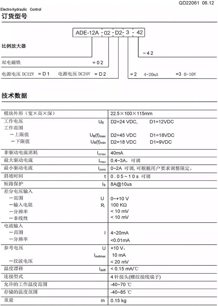Relays Relays ADE-12A-02-D2-3-42: control signal 0-10V ADE-12A-02-D2-2-42: control signal 4-20ma 1. Power supply: DC24V (EFBG series) dual proportional valve hydraulic control