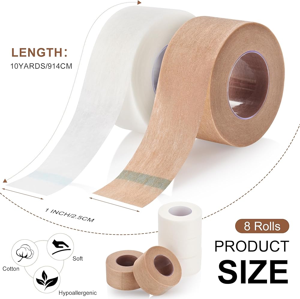 Paper tape medical 1 inch sensitive skin :1 inch x 10 yards and comes in packs of 8 rolls. must-have for homes, clinics, and hospitals. meet your replacement needs.