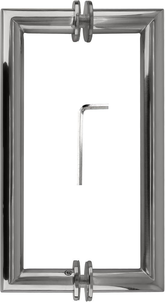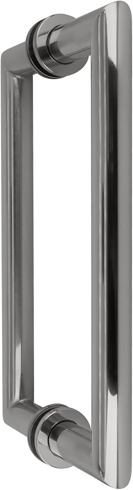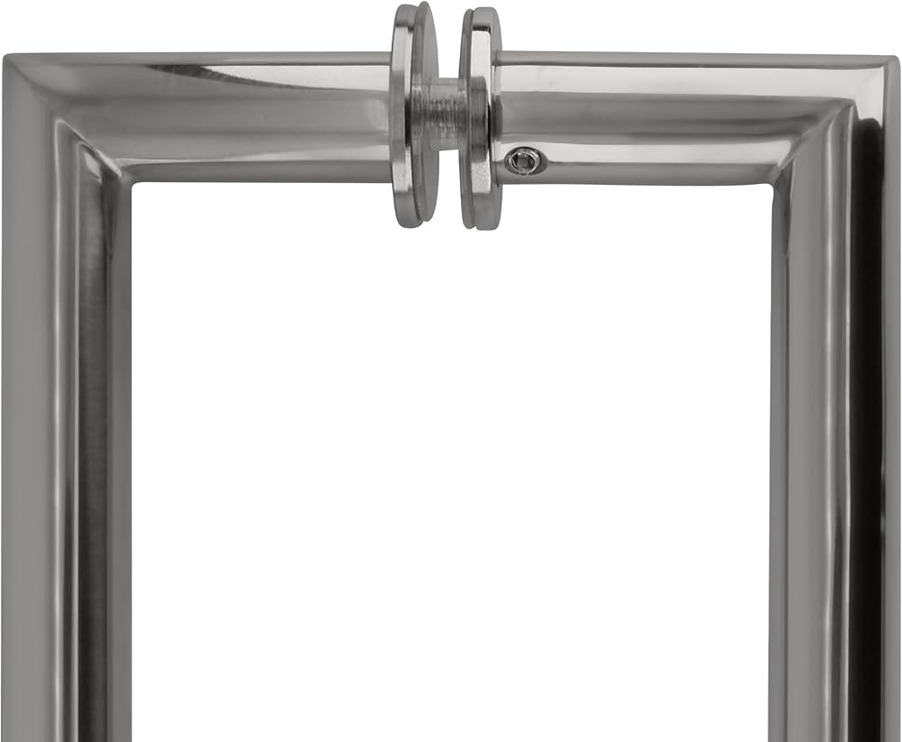 An Attractive Handle to Add Contrast to Decor Stocked in Popular 6" and 8" (152 and 203 mm) Sizes CRL MT Series Round Tubing Mitered Corner Back-to-Back Pull Handles offer the contrast of round tubing along with square mitered corners, which makes it a handle that is sure to be noticed. The round tubing of this handle provides a comfortable gripping surface and strong feel. The geometry of the handle shape makes it a favorite to match many of CRL Hinge shapes and styles. Back-up washers and nylon spacers are included to protect against glass-to-metal contact. The back-to-back style includes one Pull for each side of the door. Color: Polished Chrome Center-to-Center Hole Spacing: 8 in (203 mm) Hole Diameter Required: 1/2 in (12 mm) Minimum Order: 1 Each