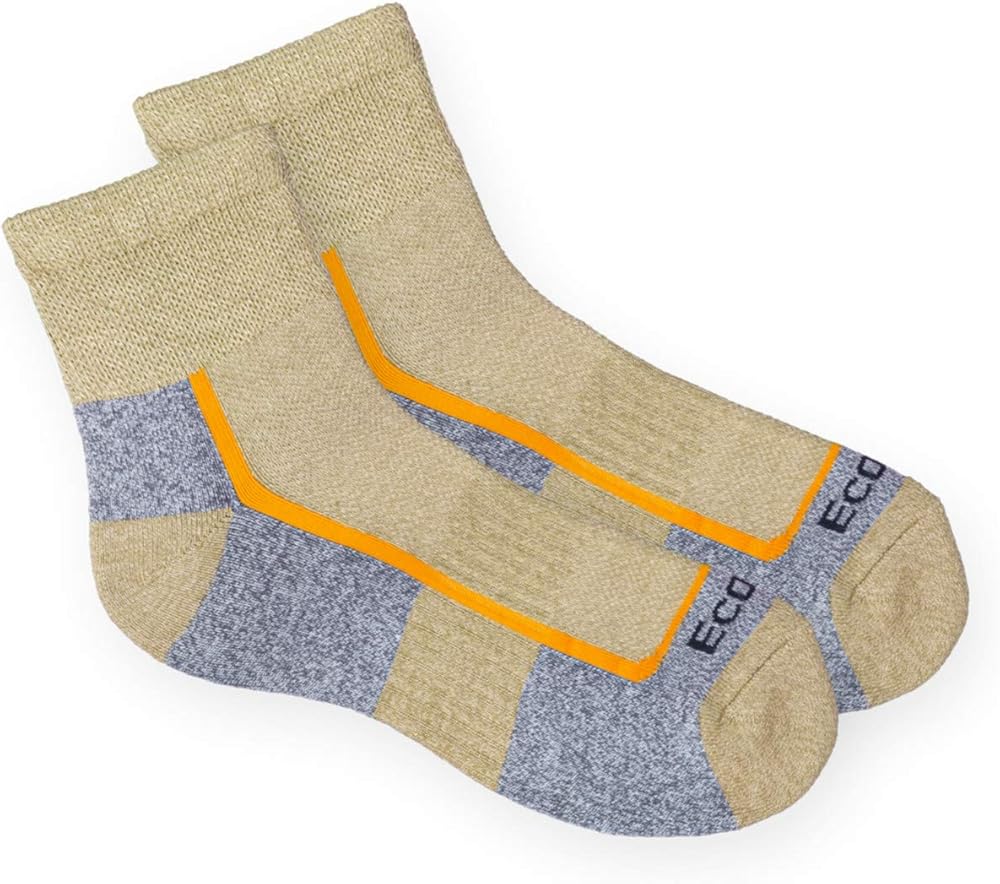EcoSox Diabetic Mid-Weight Quarter Hiking sock with Arch Support are weaved from high quality fiber. The quarter socks are exclusively designed to keep feet dry all day and pull moisture away from foot. EcoSox hikers are developed for maximum comfort and feature a smooth toe seam integrated to reduce friction. The sport socks contain an extra padded foot to create the softest and most durable hiking outdoor socks. 60% softer than cotton. Arch support feature is added to relieve foot fatigue. The daily wear socks are a perfect wear for sports enthusiasts, people dealing with foot swelling or those who need to sit or walk for long hours Hiking Socks from EcoSox are precisely designed for people who spend considerable time outdoors, camping, bicycling, trekking, or hiking. These outdoor socks prevent compression of toe, soul and heel. You get a flawless fit without compromising on comfort or style. The outdoor quarter crew socks provide a good amount of cushioning in the heel and ball of the foot. This makes it an integral part of any hiking or backpacking ensemble. Also, these unisex socks deliver enough warmth for use in moderate to cold conditions. Crafted from high-quality material, these cuff socks tend to remain damp-free despite repeated exposure to profuse sweating or humid conditions. The classic quarter crew height of these hiking socks lands a few inches above your ankle to protect against abrasion caused by boots with high cuffs. The thermo-regulating crew socks help in keeping your warm when facing extreme outdoor conditions. quarter length socks prevent foot fatigue in the most effective way. These outdoor Diabetic socks are made with extra emphasis on cushioning to keep you relaxed all day long. These socks absorb 3 to 4 times more moisture than cotton socks to keep your feet dry. . People who wear EcoSox LOVE their feet... DON'T YOU ?