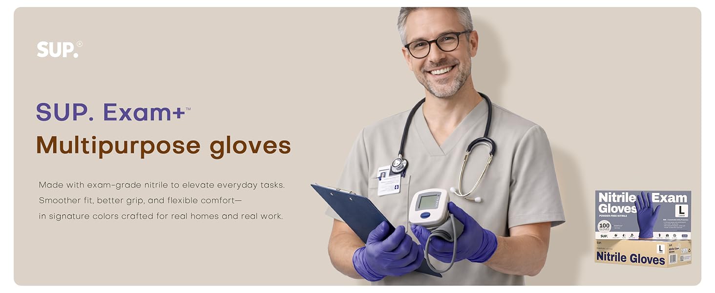• EXAM+ LIGHTWEIGHT DESIGN: SUP EXAM+ gloves are made for fast-paced, high-frequency glove changes with a comfortable, flexible feel. Approx. 3.5 mil thickness supports dexterity for routine tasks and everyday protection.
