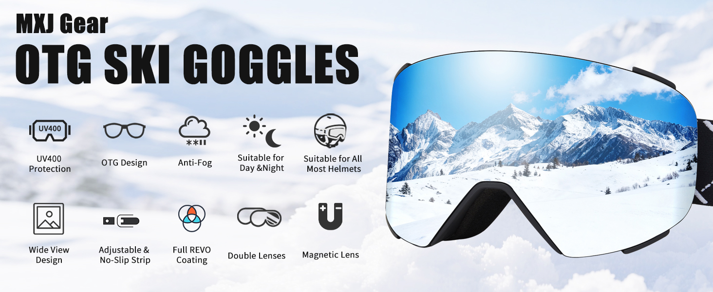 【Quick-change Lenses】MXJ Gear ski goggles feature a fast magnetic lens swap system, allowing users to change lenses quickly for day/night & different weather