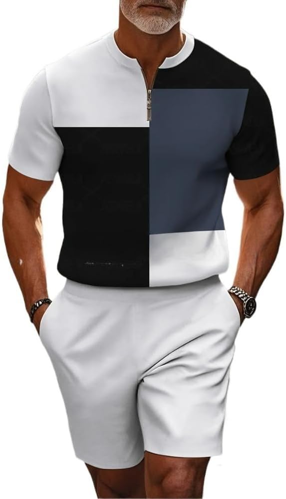 Fabric: The men's two-piece shorts are made of high-quality fabric, and both the polo shirt and shorts are comfortable and lightweight, making them perfect for summer wear