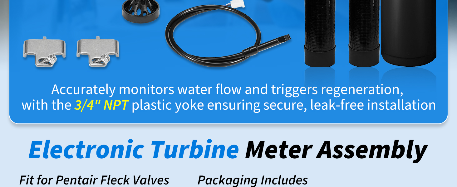 60626 Electronic Turbine Meter with 3/4" NPT Plastic Yoke,Compatible with Pentair Fleck 2510,5600SXT,5000,5800,6700,9000,9100 Water Softeners,with Clip,Screw,Flow Meter Cable