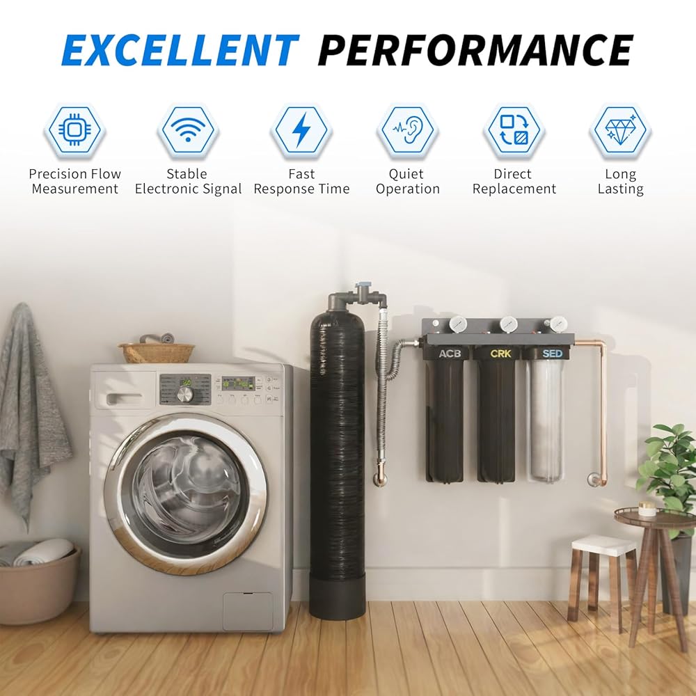 【Compatible with】Water Softeners Flow Meter fits for Pentair Fleck Valves: 2510, 4650, 5000, ProFloSXT, 5600, 5600SXT, 5800, 6700, 9000, 9100