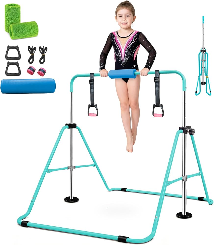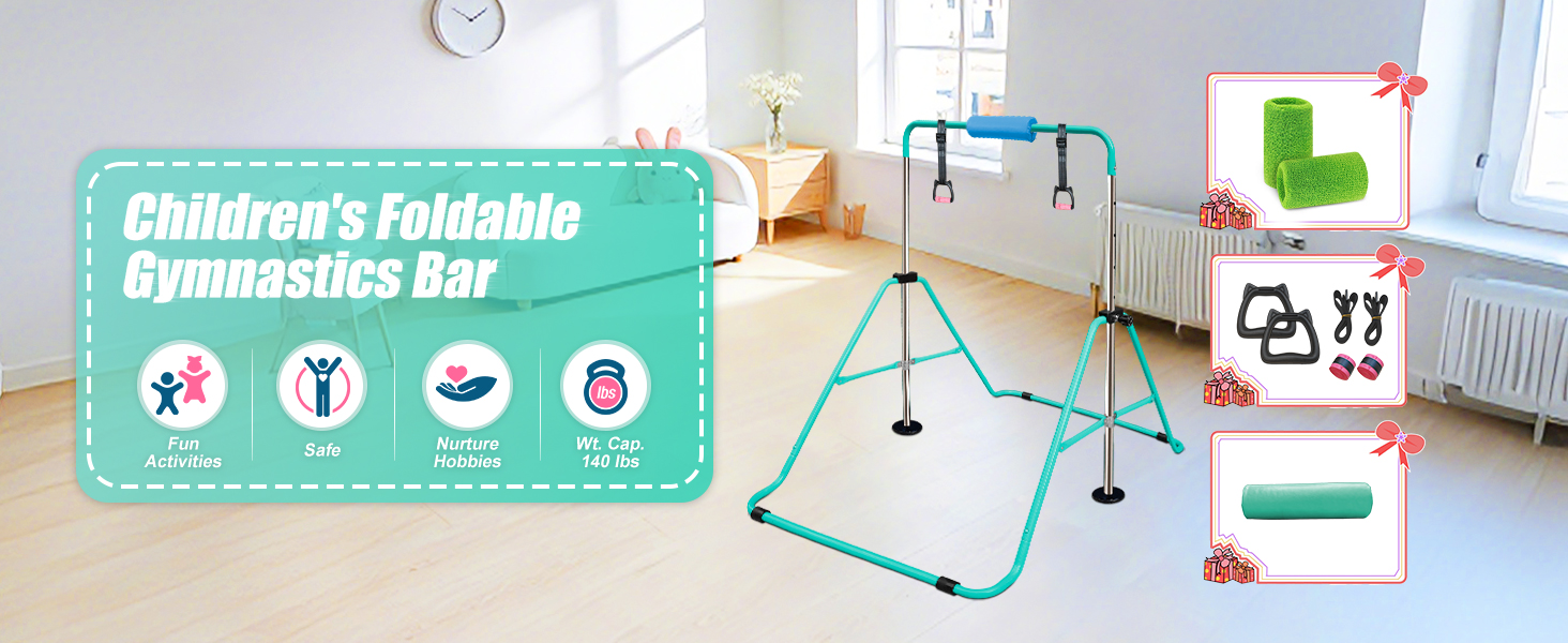 【Boosts Kids' Athletic Abilities & Healthy Growth】This foldable gymnastics bar naturally cultivates your kid's muscle strength, flexibility, and coordination. Regular training helps stretch their body, promote bone growth, and lay a solid foundation for future sports—an excellent investment in your child's physical development!