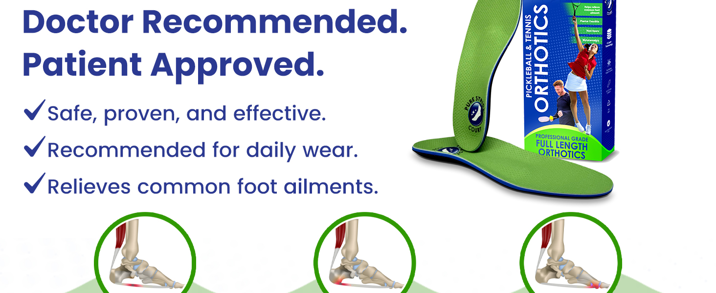 Court-Ready Orthotic Support: Engineered for tennis and pickleball players, these full-length orthotics enhance foot alignment, balance, and agility—perfect for competitive and recreational athletes.