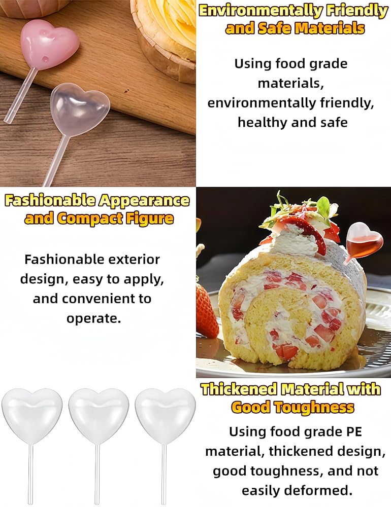 Add a Touch of Sweetness to Your Creations with Luvilly Heart Pipettes! Elevate your baking and dessert decorating game with these adorable heart pipettes. Perfect for adding precise amounts of syrup, jam, or liquid flavoring to cakes, cupcakes, and other sweet treats. The charming heart-shaped design makes them a delightful addition to any party or special occasion. Premium Quality - Made from food-grade plastic that's safe for all culinary uses Precise Application - 4ml capacity allows for controlled, mess-free decorating Versatile Use - Ideal for cakes, desserts, cocktails, or even projects Great Value - Pack of 100 ensures you'll always have enough for your needs Crystal Clear - Transparent design lets you see the liquid inside Whether you're a professional baker or a home cook, these heart pipettes will help you create picture-perfect desserts that taste as good as they look. The unique heart shape adds a playful, romantic touch to your edible masterpieces. Great for: Parties and celebrations Anniversary desserts Valentine's Day treats Baking classes and DIY projects Crafting and creative projects Make every dessert special with Luvilly's charming heart pipettes - where functionality meets cuteness!