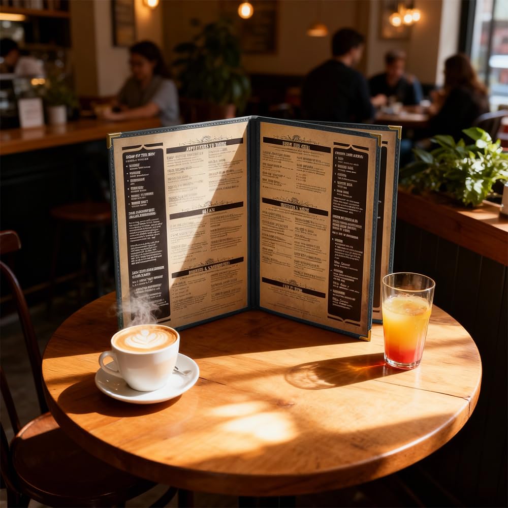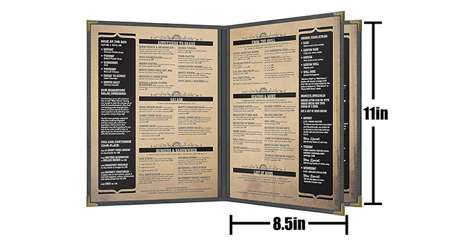 ✔Ample Display Space: The 8.5" x 11" size with 4 views (front and back of both sides) provides plenty of room for showcasing food and beverage offerings, making it perfect for various menu sizes.