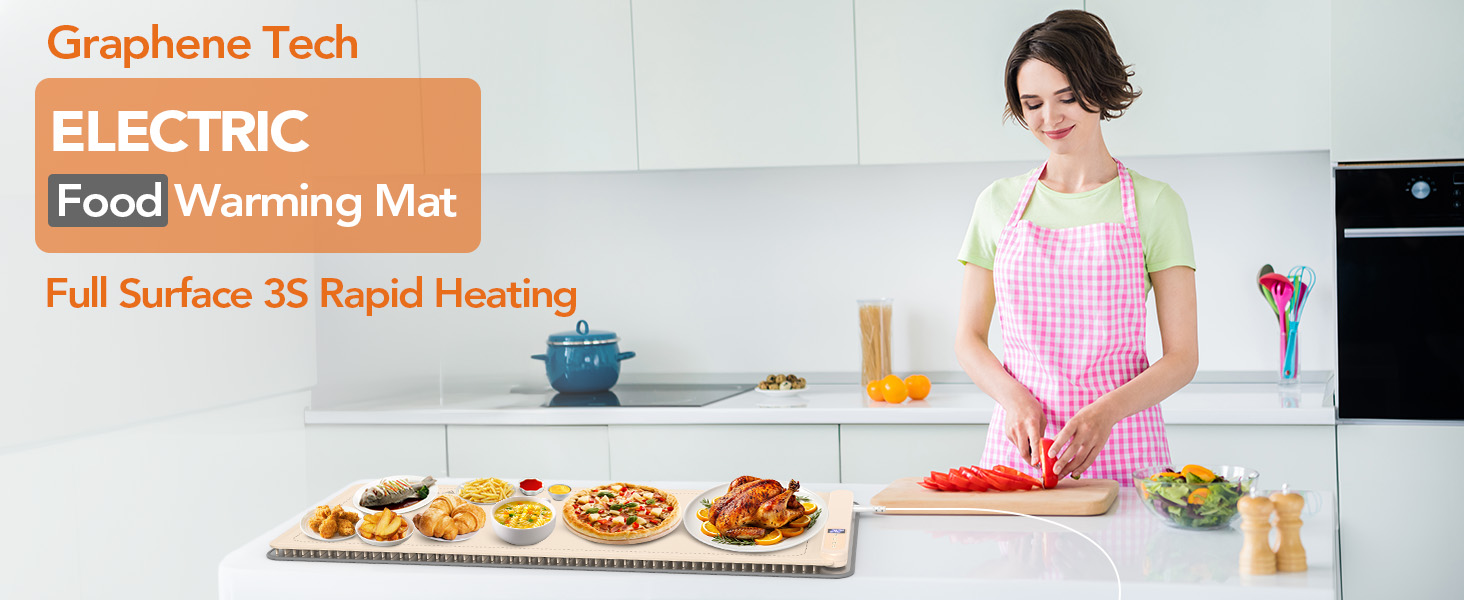 Warming Mat for Food, XXL 35"x16", Electric Warming Tray for Parties Buffet, Graphene 3S Rapid Full-Surface Heating Mat with 8 Level Adjustable Temp and 12 Hours Timer, Included Insulating Mat