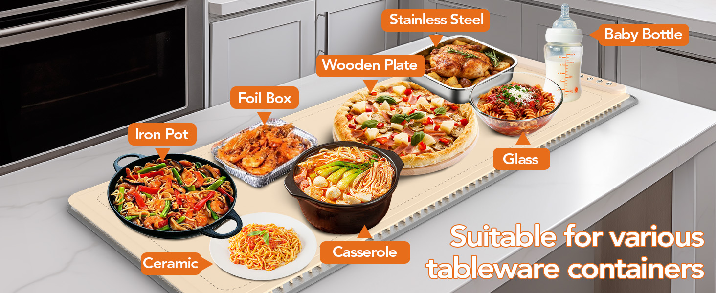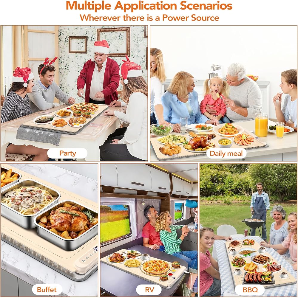 Compatible with various tableware containers: Our heating tray, designed for buffet parties, is designed to complement a range of tableware materials, including metal, ceramic, glass, and enamel, enhancing versatility and convenience. You can heat various dishes and satisfy your diverse cooking desires.