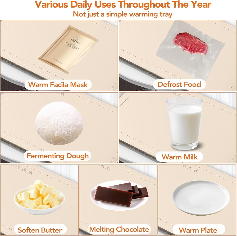Advanced NTC Controller - In terms of temperature and timing functions, we have adopted the most advanced NTC controller. The temperature can be adjusted to 8 levels, with a range of 86 ° F-212 ° F, providing you with more choices for daily dining, heating, fermenting dough, thawing food, and other purposes. The 0-12-hour timer function greatly extends the warmth time of food, ensuring that your favorite dishes always maintain the best taste.