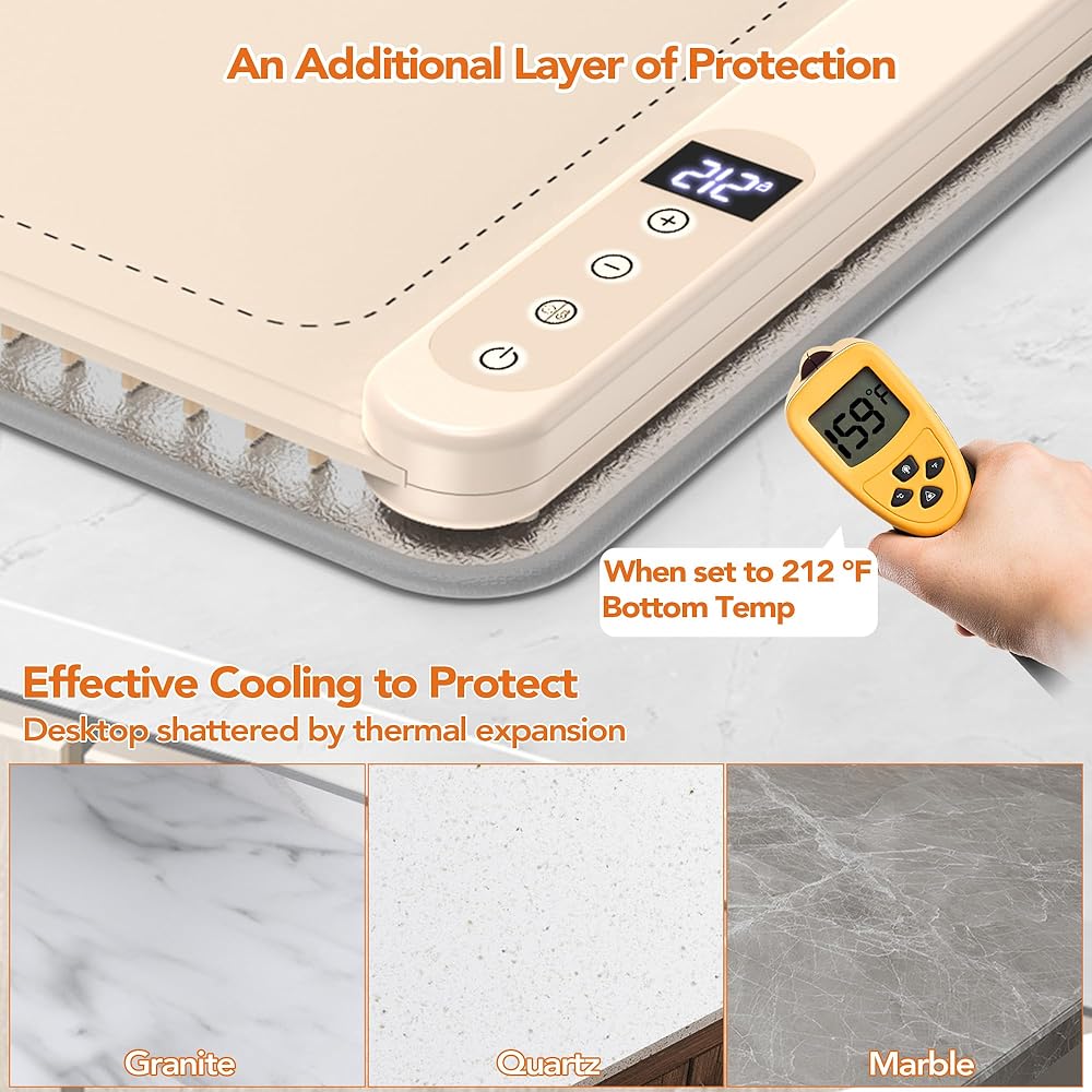 Multi-protection worry-free use - If there is no timer, the heating pad will automatically turn off after 3 hours. In addition, we have added a child lock function, which will automatically turn on if there is no operation for more than 30 seconds, preventing accidental touch and allowing families with infants to use it with peace of mind. Paired with the included insulation pad, it can greatly reduce the bottom temperature, protect your dining table, and prevent damage.