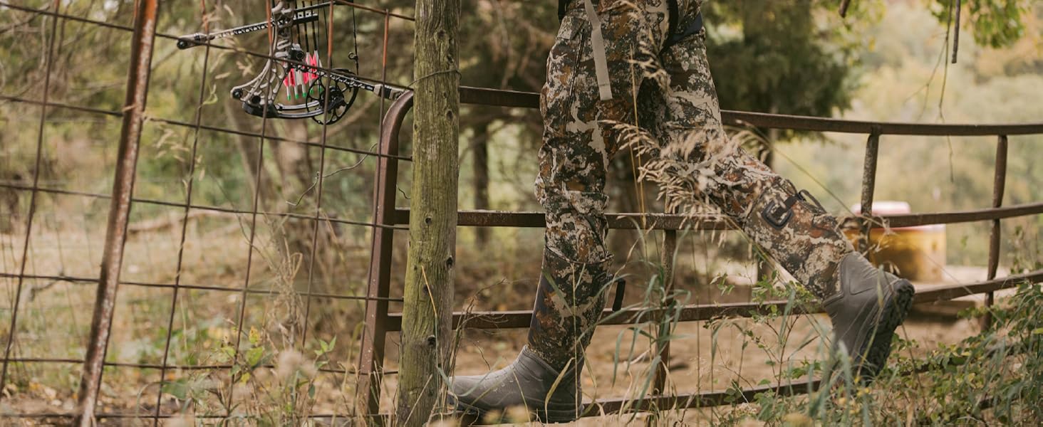 Premium mens hunting pants with silent 4-way stretch polyester - perfect for bow hunting gear needs from early hunting season tree stand pursuits through upland hunting