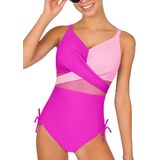 【Stylish & Functional Design】Teen bathing suits for girls, one piece swimsuit girls, featuring trendy criss-cross on the front, with sheer mesh at waist, plus a chic color-block design, this big girls swimsuit delivers a fashionable yet elegant look. With removable chest pads and adjustable straps, it ensures a secure, custom fit for unrestrained movement and confidence in the water.