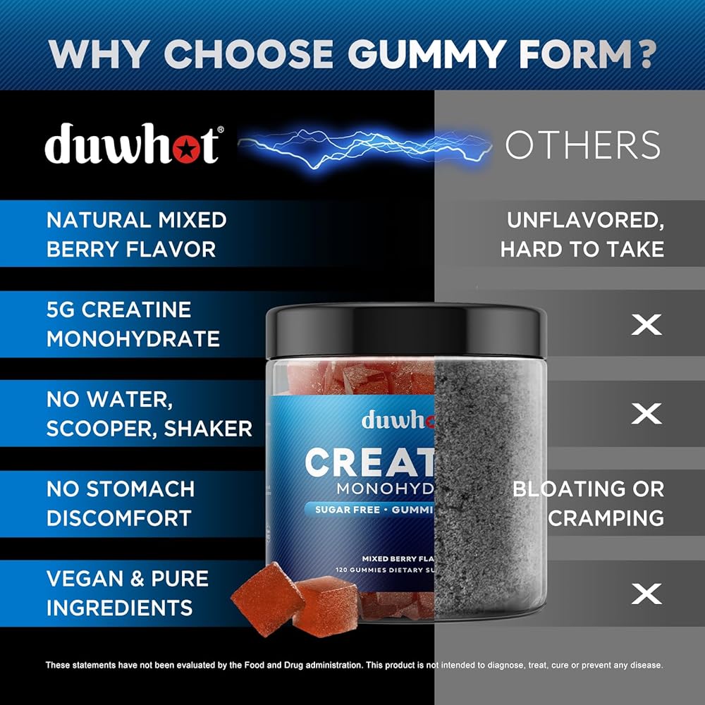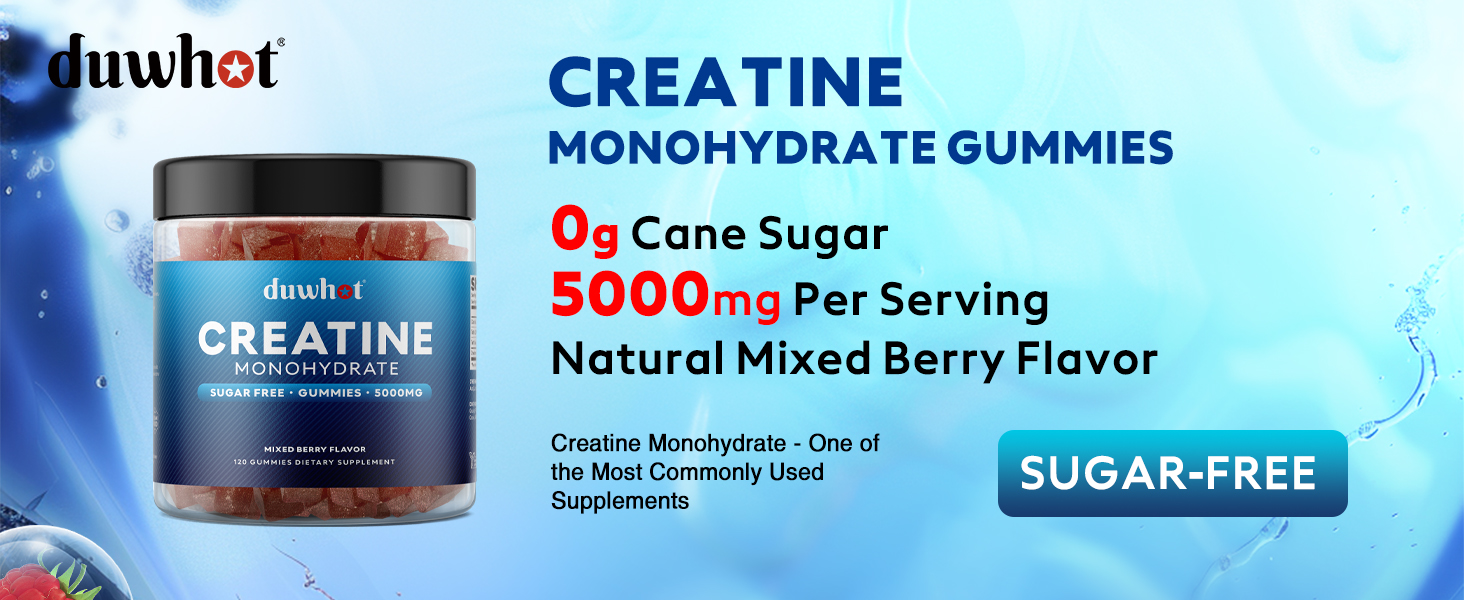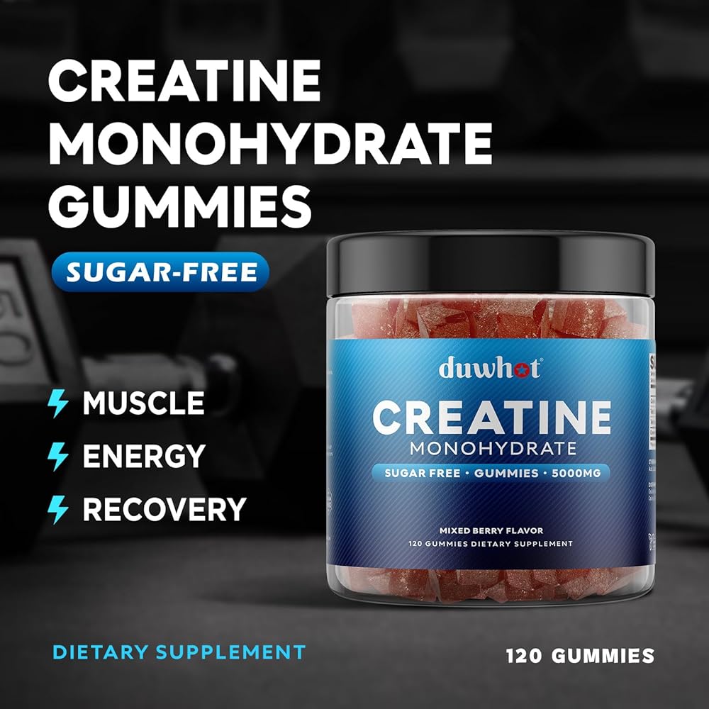 duwhot Creatine Monohydrate Gummies for Men, Creatine Monohydrate Chewables 5g Per Serving, Vegan, Sugar Free, Mixberry Flavor, 120 Count