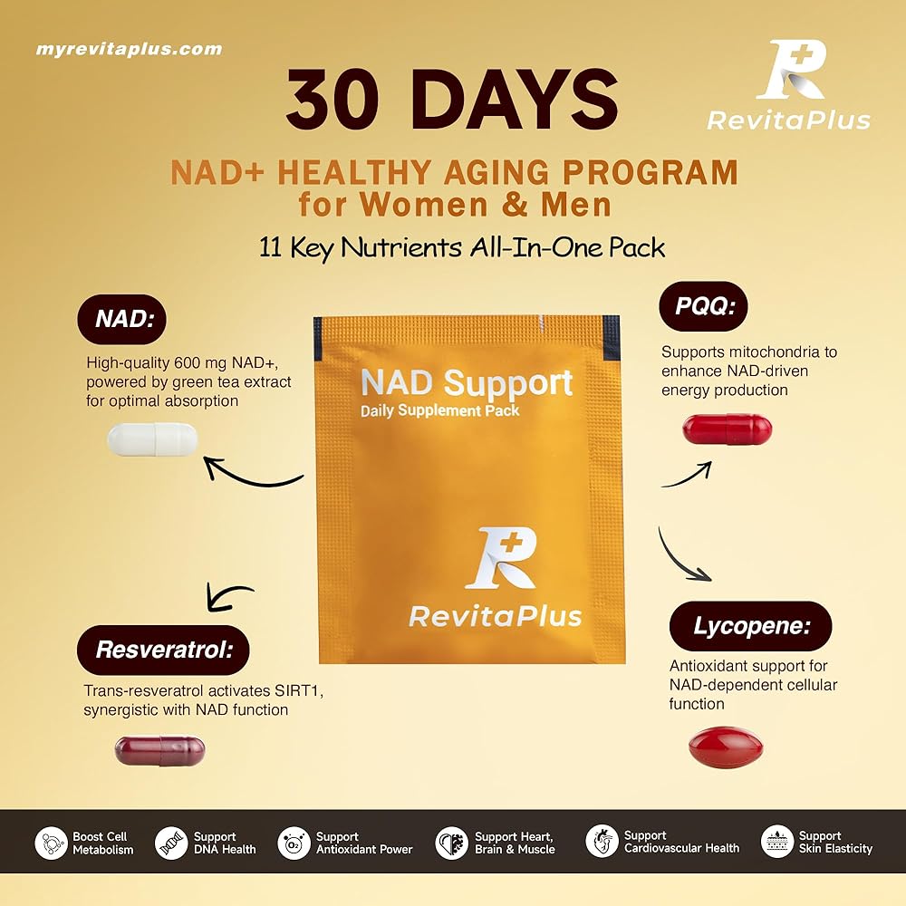 Designed for Simplify Your Life: Unlike traditional single-bottle supplements, RevitaPlus NAD+ daily pack makes it easy—no need to manage multiple bottles or complex routines. Perfect for busy schedules, travel, and long-term wellness habits