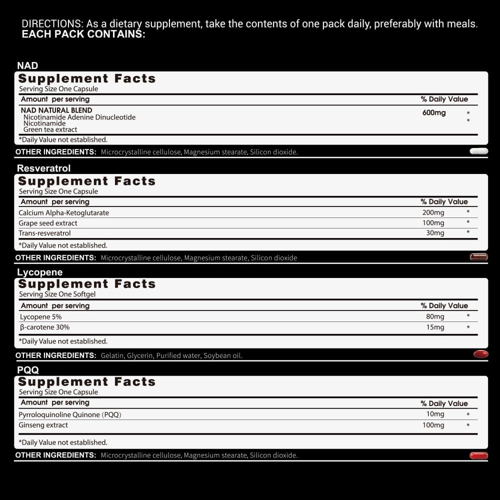 NAD Supplement with Resveratrol, PQQ,Ca-AKG,Nicotinamide,Green Tea, Advanced NAD+ Supplement Daily Pack Support Healthy Mitochondria,Healthy Aging and Cellular Energy for Women & Men 30 Packs