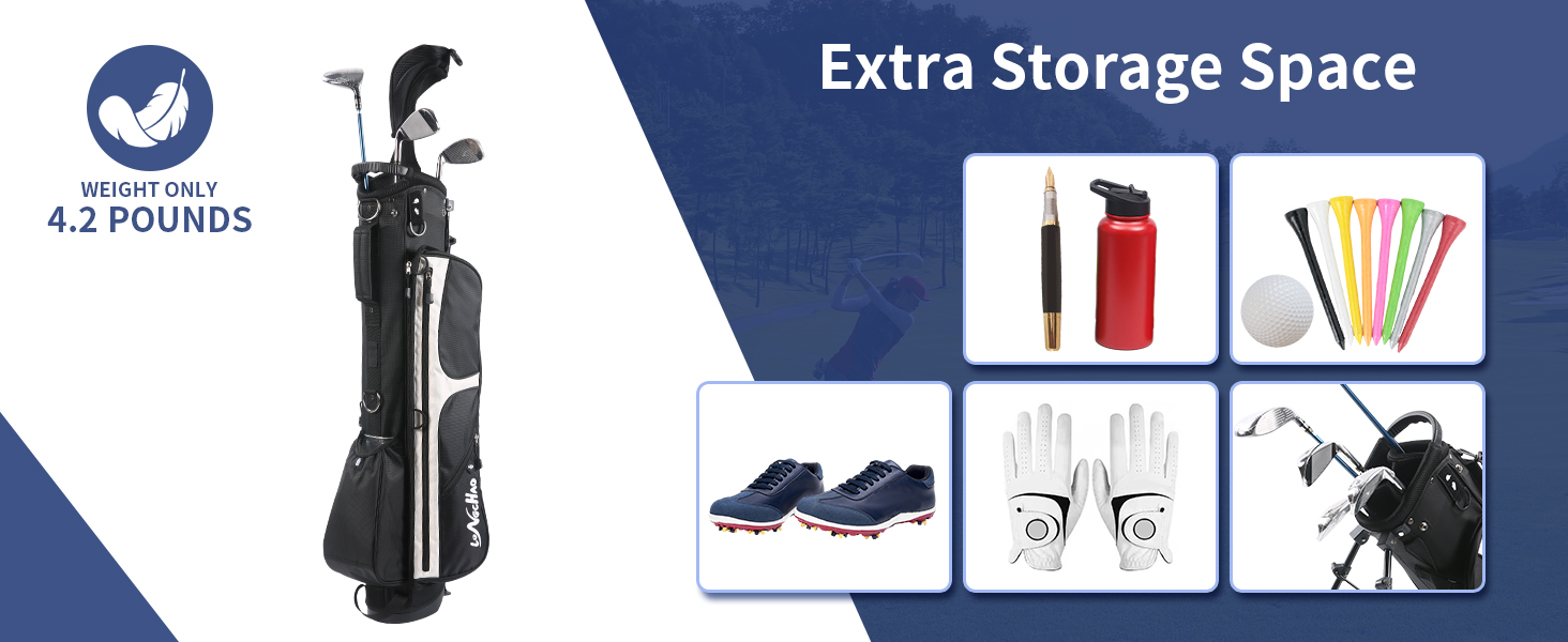 This lightweight golf stand bag is equippedwith 4 zipper pockets ensuring you enough space to accommodate your accessoriesor divot tools.