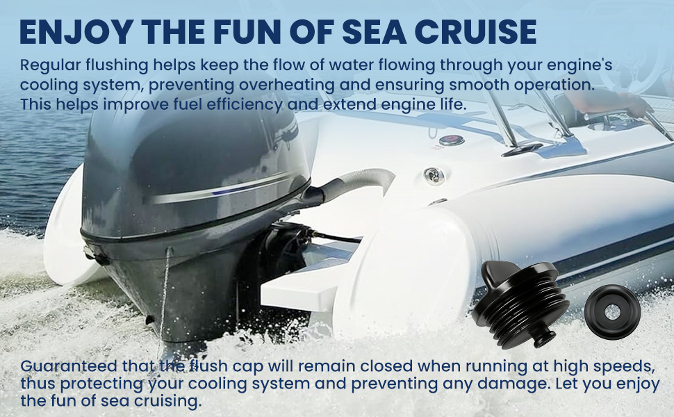 ENJOY THE FUN OF SEA CRUISE: Regular flushing helps keep the flow of water flowing through your engine's cooling system, preventing overheating and ensuring smooth operation. This helps improve fuel efficiency and extend engine life.Guaranteed that the flush cap will remain closed when running at high speeds, thus protecting your cooling system and preventing any damage. Let you enjoy the fun of sea cruising.