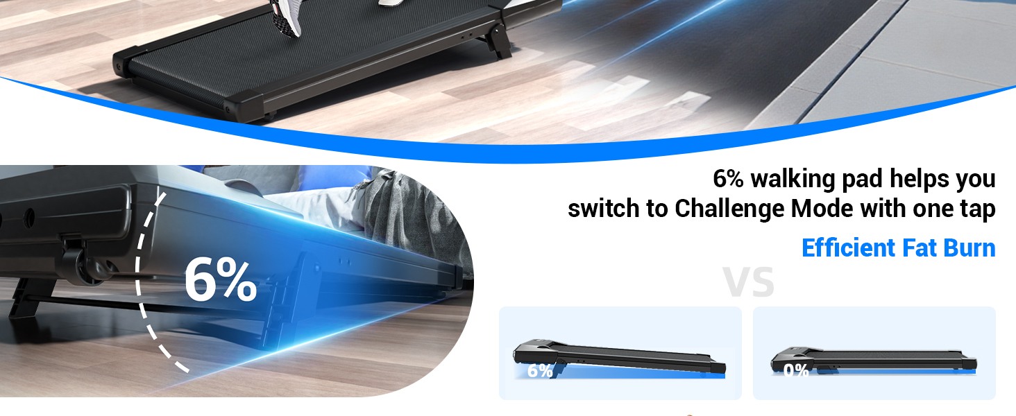 6% Manual Incline for Added Walking Intensity: Manual incline increases effort during walking, helping improve daily activity efficiency and calorie burn while remaining low impact on joints